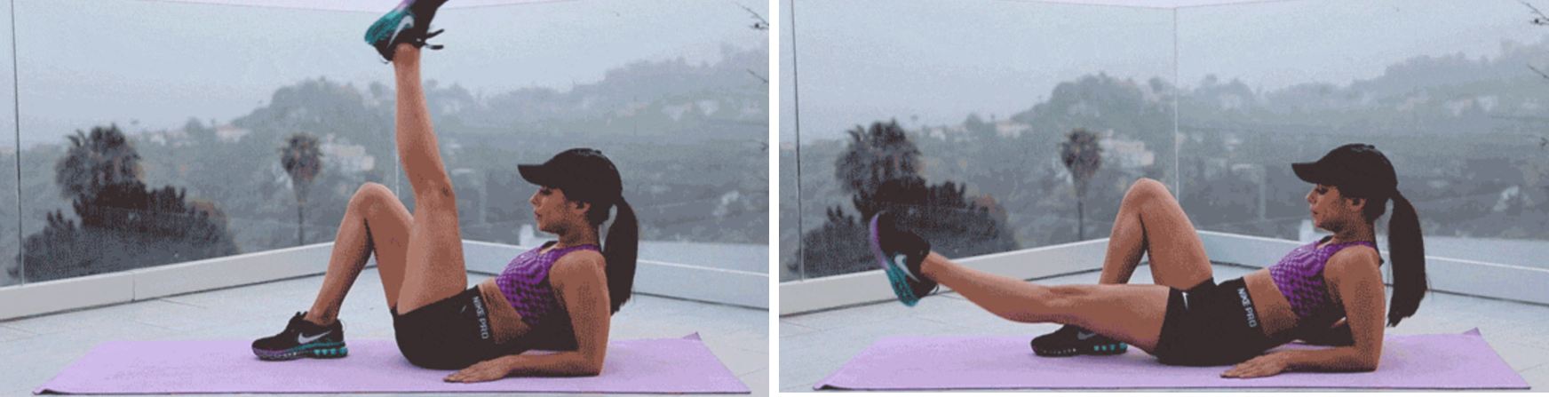 [누워서 다리를 들고 상체와 90도를 만들어 준뒤 180도가 되도록 벌려준 뒤 다리를 교차하며 올려줍니다.]